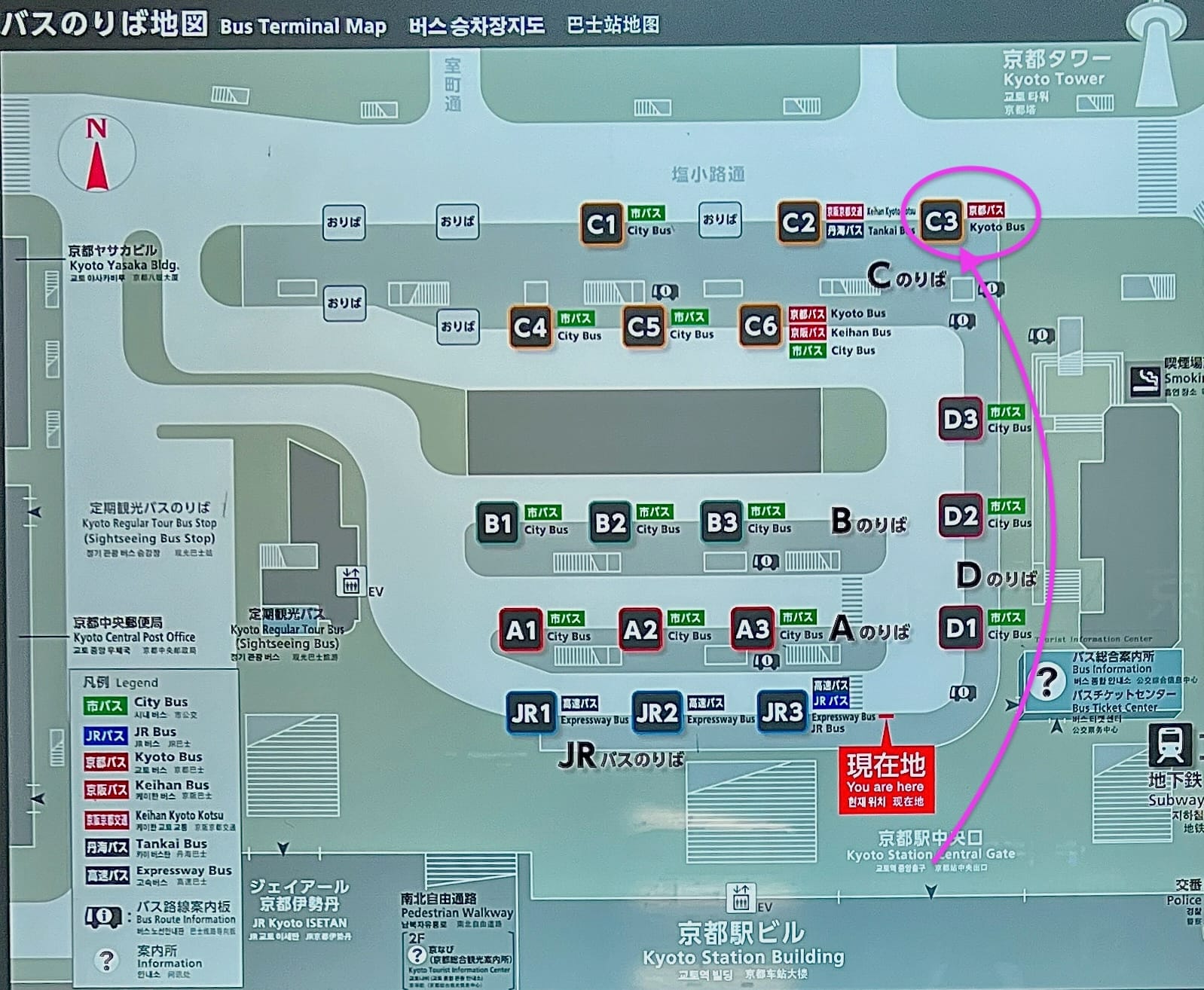 「C3乗り場」からは清水寺方面行きの京都バスが運行する。