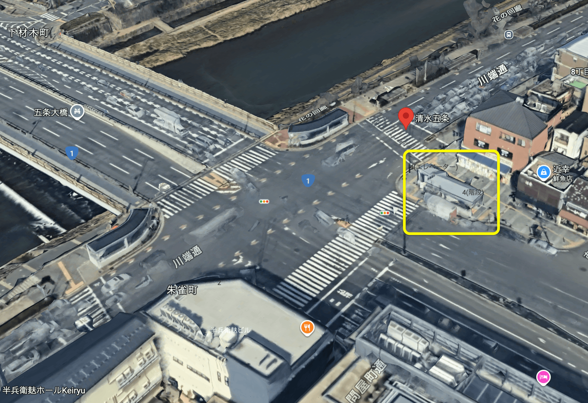 清水五条駅の4番出口を出て身体の向きはそのままで徒歩1分くらい直進した先に「五条京阪前バス停」がパンツちら見え級にチラ見え〜る👀