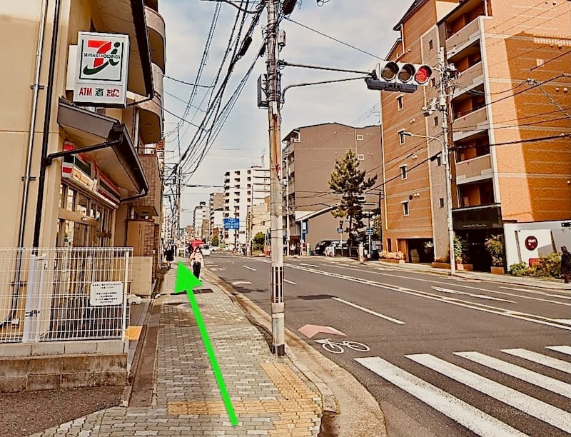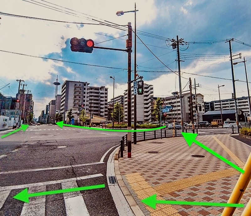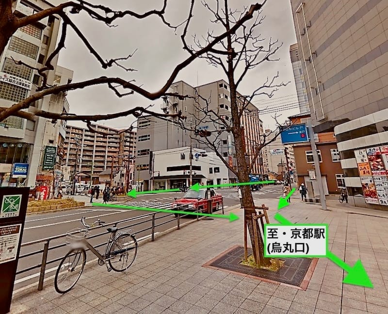 河原町塩小路交差点がパンツちら見え級にチラ見え〜たら、横断歩道を渡り、京都タワーが‥やっぱりチラ見ぇ〜る方向へ向かって素敵に直進!