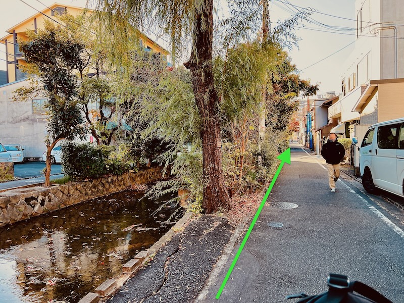 七条河原町交差点手前の七条橋で‥ほどよく素敵に左折し、情緒あふれる高瀬川沿いを進む♡