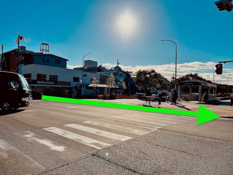 国道一号線の高架下の横断歩道を素敵に渡って素敵に直進!