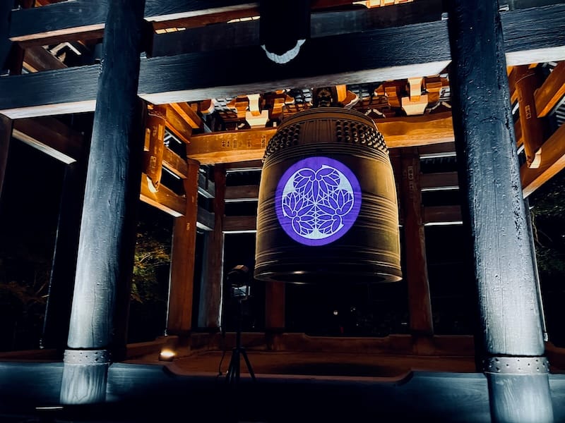 鐘楼内に素敵に吊られる梵鐘の撞坐には、チオビタ‥ではなく、知恩院!の寺紋をイメージしたロゴライトが照射‥されち‥(耐|耐) される! ふぅ