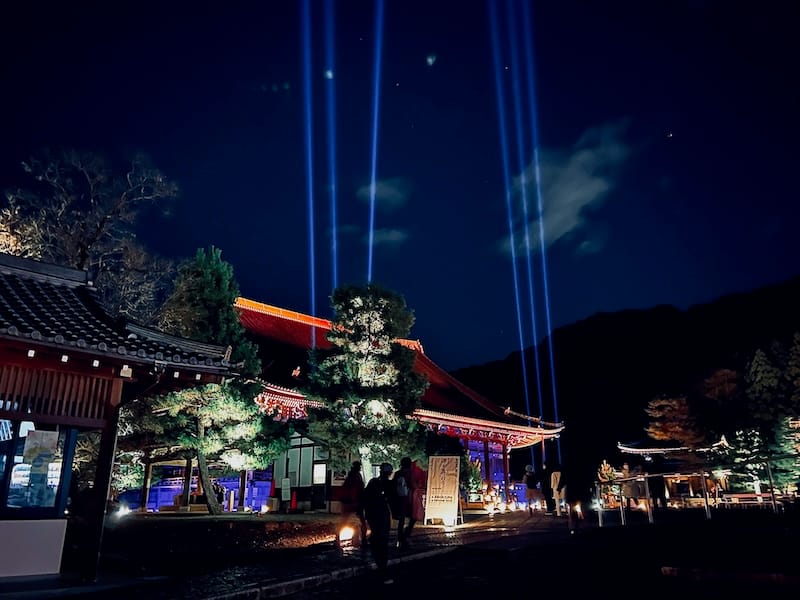 三門の間口から素敵に撮影した男坂のライトアップ&インスタレーション